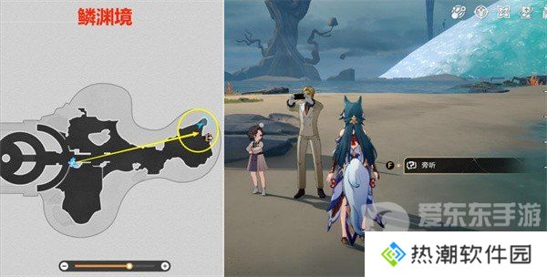 2、在对话中,选择选项“鳞渊境”。然后来到鳞渊境找到了2位npc,选择旁听即可获得成就。
